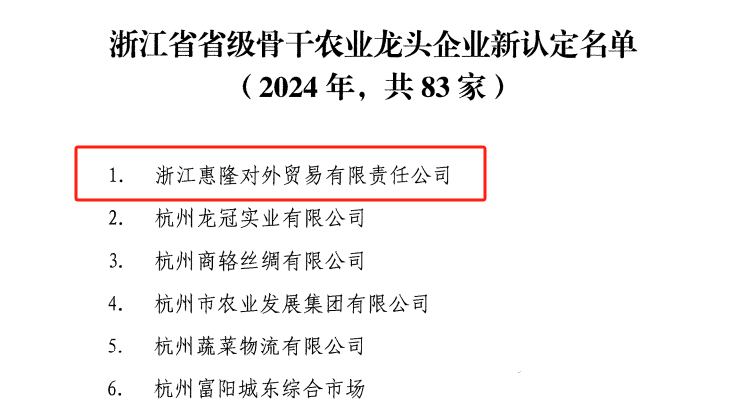 新認(rèn)定!浙江惠隆獲評省級骨干農(nóng)業(yè)龍頭企業(yè)稱號