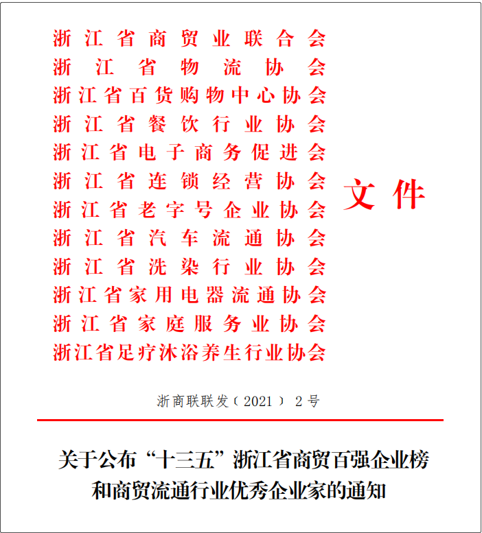 浙江土畜榮登“十三五”浙江省商貿(mào)百?gòu)?qiáng)企業(yè)榜
