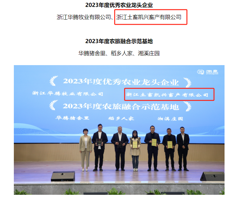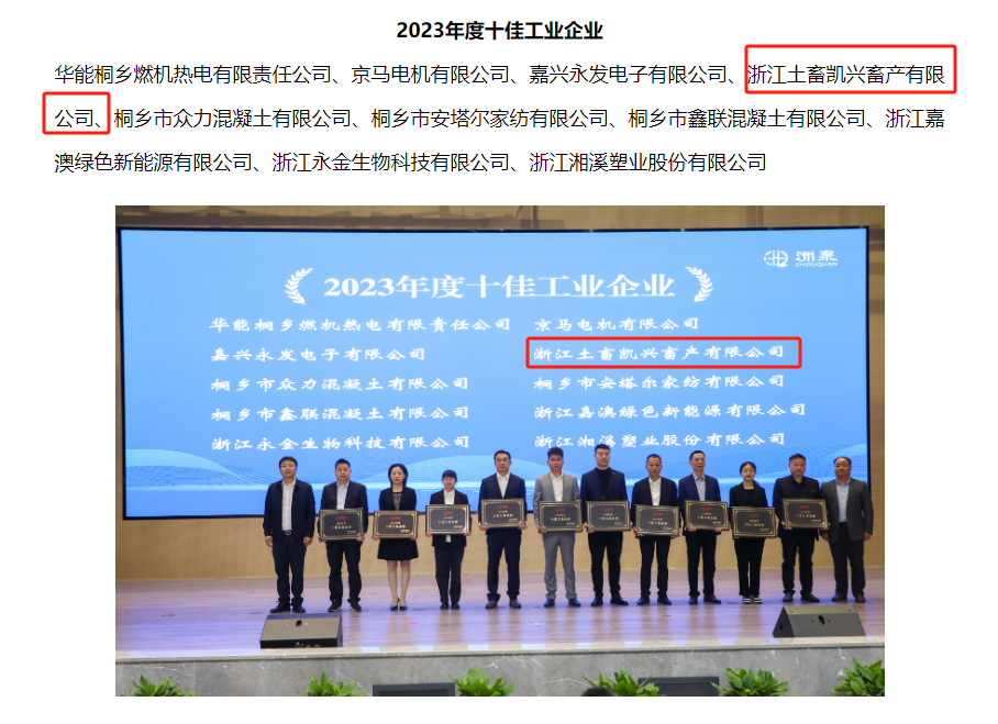 3月23日上午,洲泉鎮(zhèn)召開2024年經(jīng)濟(jì)高質(zhì)量發(fā)展工作推進(jìn)會(huì)暨拼招商、攻項(xiàng)目、優(yōu)環(huán)境動(dòng)員部署會(huì),充分肯定了浙江土畜凱興畜產(chǎn)有限公司(以下稱凱興畜產(chǎn))過(guò)去一年穩(wěn)健經(jīng)營(yíng)和創(chuàng)新發(fā)展成果,并授予凱興畜產(chǎn)洲泉鎮(zhèn)2023年度“十佳工業(yè)企業(yè)”和“優(yōu)秀農(nóng)業(yè)龍頭企業(yè)”雙重榮譽(yù)。