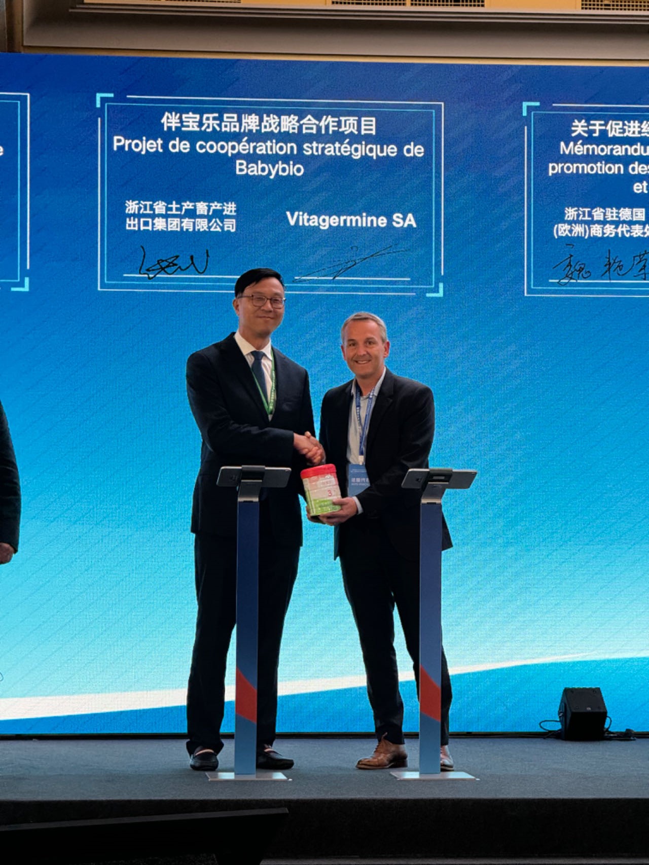 5月13日,浙江土畜參加浙江-巴黎大區(qū)高新產(chǎn)業(yè)創(chuàng)新合作對接會,與“伴寶樂”母公司法國創(chuàng)機然開展戰(zhàn)略合作洽談。在浙江省委易煉紅書記、集團領(lǐng)導的見證下,張斌與伴寶樂CEO Ludovic BEGUE先生簽訂品牌戰(zhàn)略合作項目,未來5年浙江土畜向法國創(chuàng)機然公司采購進口“伴寶樂”乳制品及嬰幼兒輔食產(chǎn)品1億美元。在法期間,張斌隨高秉學董事長拜訪法國創(chuàng)機然公司總部,前往伴寶樂位于法國南特的奶粉工廠考察,對法國乳制品、嬰兒奶粉等市場進行調(diào)研。作為法國高端有機嬰幼兒食品第一品牌,法國創(chuàng)機然公司不僅樹立起在歐洲有機乳制品領(lǐng)域的標桿,同樣引領(lǐng)著世界綠色產(chǎn)業(yè)發(fā)展方向,浙江土畜與法國創(chuàng)機然公司的深度合作將極大提升中國企業(yè)在有機食品領(lǐng)域的發(fā)展進程。