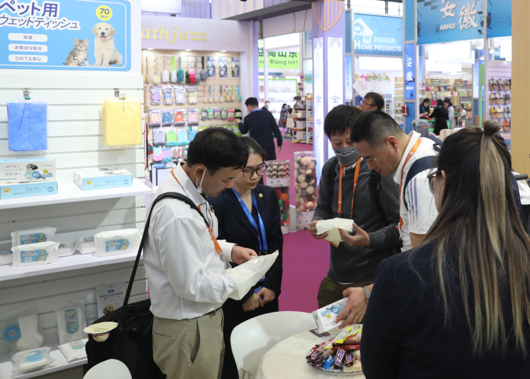 展會(huì)期間,公司領(lǐng)導(dǎo)林軍、魏濤濤等走訪各展位調(diào)研指導(dǎo),實(shí)地考察展位陳放效果、客戶接洽情況,鼓勵(lì)各參展人員把握機(jī)遇搶訂單。據(jù)統(tǒng)計(jì),本屆華交會(huì)期間公司展區(qū)累計(jì)接待海內(nèi)外采購商逾60位,其中搭載創(chuàng)新設(shè)計(jì)的功能型寵物用品受到采購商青睞,現(xiàn)場即達(dá)成10萬美元意向訂單。