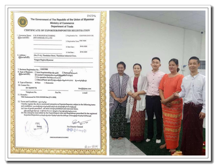 惠元緬甸工廠進(jìn)出口證書 經(jīng)營團隊(左二總經(jīng)理汪明霞)