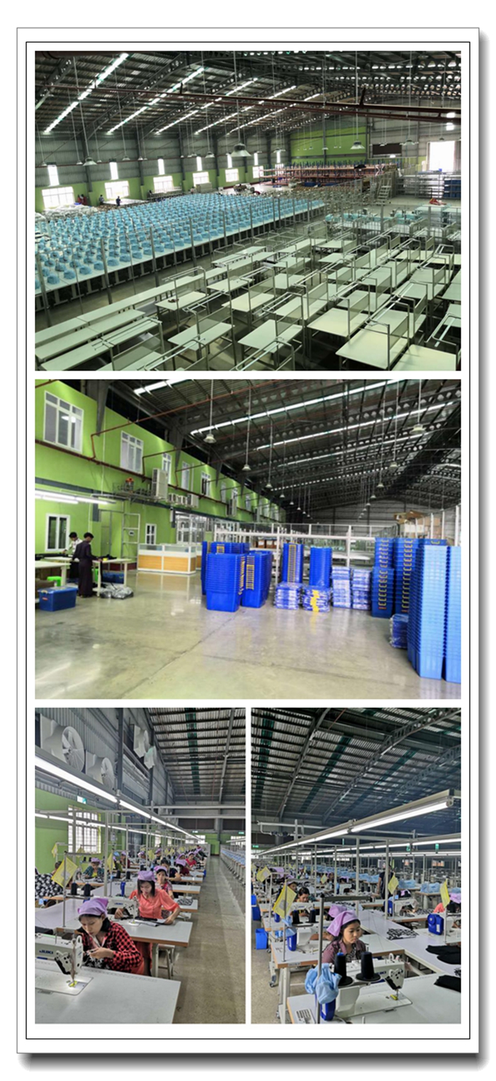 惠元緬甸制衣廠注冊200萬美元,占地面積8000平方米,共有16條生產(chǎn)線,設(shè)計年生產(chǎn)能力100萬件。工廠整體布局合理、環(huán)境干凈整潔、管理科學(xué)嚴(yán)謹(jǐn),投產(chǎn)初始階段計劃共招聘1100人,在產(chǎn)生經(jīng)濟效益的同時,也將很好地解決本地人就業(yè)問題,有助于促進(jìn)中緬兩地的溝通與交流。目前廠區(qū)各類生產(chǎn)設(shè)備已全部安裝調(diào)試完畢,大部分新招聘員工經(jīng)過培訓(xùn)后已具備獨立上崗操作能力,一起合作的中緬員工友好互助、氣氛融洽。