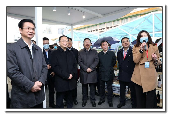 開幕日上午,省政府副秘書長(zhǎng)高屹,省商務(wù)廳廳長(zhǎng)盛秋平,下城區(qū)委書記劉穎等領(lǐng)導(dǎo)在省國(guó)貿(mào)集團(tuán)黨委委員、副總經(jīng)理黃道領(lǐng),浙江土畜總經(jīng)理?xiàng)钴S勝的陪同下,蒞臨公司展位,現(xiàn)場(chǎng)觀看公司斯托卡羅紅酒在阿里平臺(tái)上的“云拍賣”活動(dòng)。黃總代表國(guó)貿(mào)集團(tuán)向到場(chǎng)的嘉賓們?cè)敿?xì)介紹了浙江土畜進(jìn)口的牛肉、紅酒和牛奶等產(chǎn)品。近年來(lái),浙江土畜依托互聯(lián)網(wǎng)科技和武林商圈黨建聯(lián)盟豐富的企業(yè)資源,積極培育進(jìn)口產(chǎn)品的新零售模式,努力促進(jìn)傳統(tǒng)商貿(mào)業(yè)務(wù)云轉(zhuǎn)型。