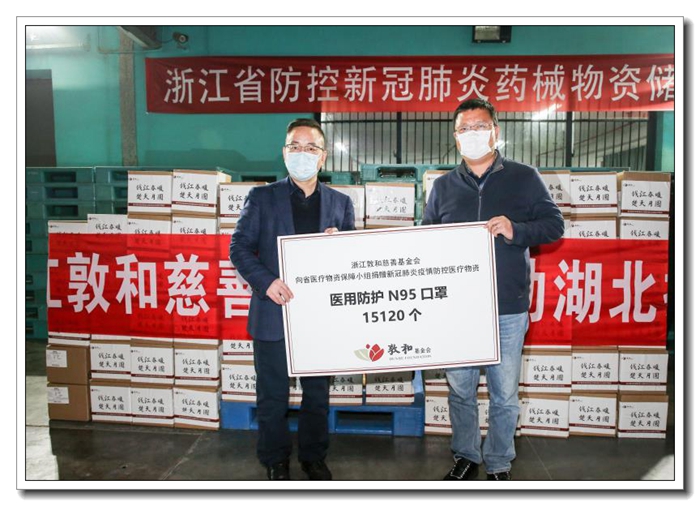 該批N95口罩共計15120只,價值 30.24萬元。經(jīng)省商務廳、經(jīng)信廳、藥監(jiān)局三方會商,最終指定通過浙江敦和慈善基金會對外捐贈,并在3月初送達武漢,在湖北抗擊疫情一線發(fā)揮了重要作用。