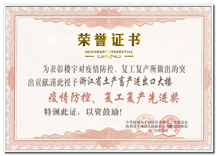 近日,省土畜因疫情防控和復(fù)工復(fù)產(chǎn)表現(xiàn)突出、對(duì)地方財(cái)政貢獻(xiàn)成績(jī)顯著、促進(jìn)天水地區(qū)樓宇經(jīng)濟(jì)社會(huì)發(fā)展成效明顯,被天水街道授予“2019年度天水地區(qū)樓宇經(jīng)濟(jì)優(yōu)勝單位二等獎(jiǎng)”、“疫情防控、復(fù)工復(fù)產(chǎn)先進(jìn)獎(jiǎng)”兩項(xiàng)榮譽(yù)稱號(hào)。