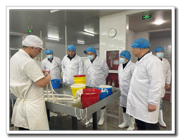 座談會(huì)后,帥長(zhǎng)斌一行參觀了凱興畜產(chǎn)加工車(chē)間,詳細(xì)了解腸衣生產(chǎn)工藝,并和一線工人親切交流。
