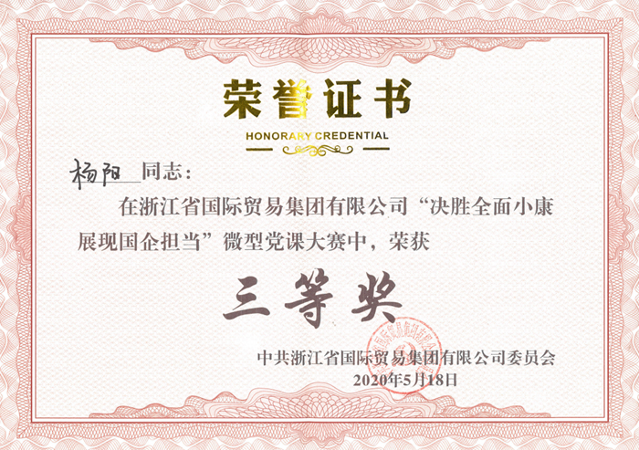 5月18日下午,省國(guó)貿(mào)集團(tuán)第四屆微型黨課大賽在19樓會(huì)議廳隆重舉行,來(lái)自各成員公司的19名參賽選手緊緊圍繞“決勝全面小康、展現(xiàn)國(guó)企擔(dān)當(dāng)”的主題,結(jié)合不同崗位、不同業(yè)態(tài)、不同角度,從細(xì)微處談起,從個(gè)人閱歷談起,從公司發(fā)展談起,從理想信念談起,或表達(dá)奮斗心聲,或介紹身邊典型,或抒發(fā)祝福情感,用“演”與“講”的才情與智慧,讓現(xiàn)場(chǎng)觀眾備受鼓舞,喚起了大家的思考與共鳴,得到了專家評(píng)委們的高度肯定,我公司參賽選手楊陽(yáng)最終榮獲大賽三等獎(jiǎng)。