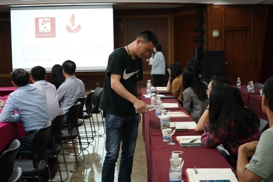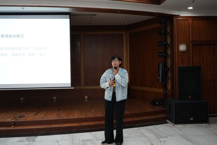 進(jìn)口一部品酒師任杰介紹了浙江土畜紅酒業(yè)務(wù)發(fā)展背景和現(xiàn)有紅酒代理品牌,重點(diǎn)介紹了目前公司代理的奔富和吉哈伯通兩個(gè)品牌商,在現(xiàn)場(chǎng)講述了紅酒釀造工藝、全球重點(diǎn)產(chǎn)區(qū)、葡萄酒的類別等知識(shí),并普及了品鑒紅酒常識(shí)。