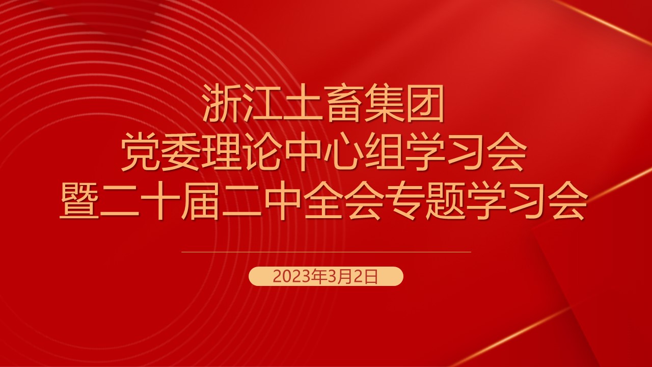 3月2日,浙江土畜黨委召開黨委理論中心組學(xué)習(xí)會,認(rèn)真?zhèn)鬟_(dá)學(xué)習(xí)黨的二十屆二中全會精神,緊密結(jié)合公司實(shí)際研究貫徹落實(shí)措施。公司黨委書記、董事長張斌主持會議并作中心發(fā)言,中心組成員立足分管領(lǐng)域分管工作作交流發(fā)言。