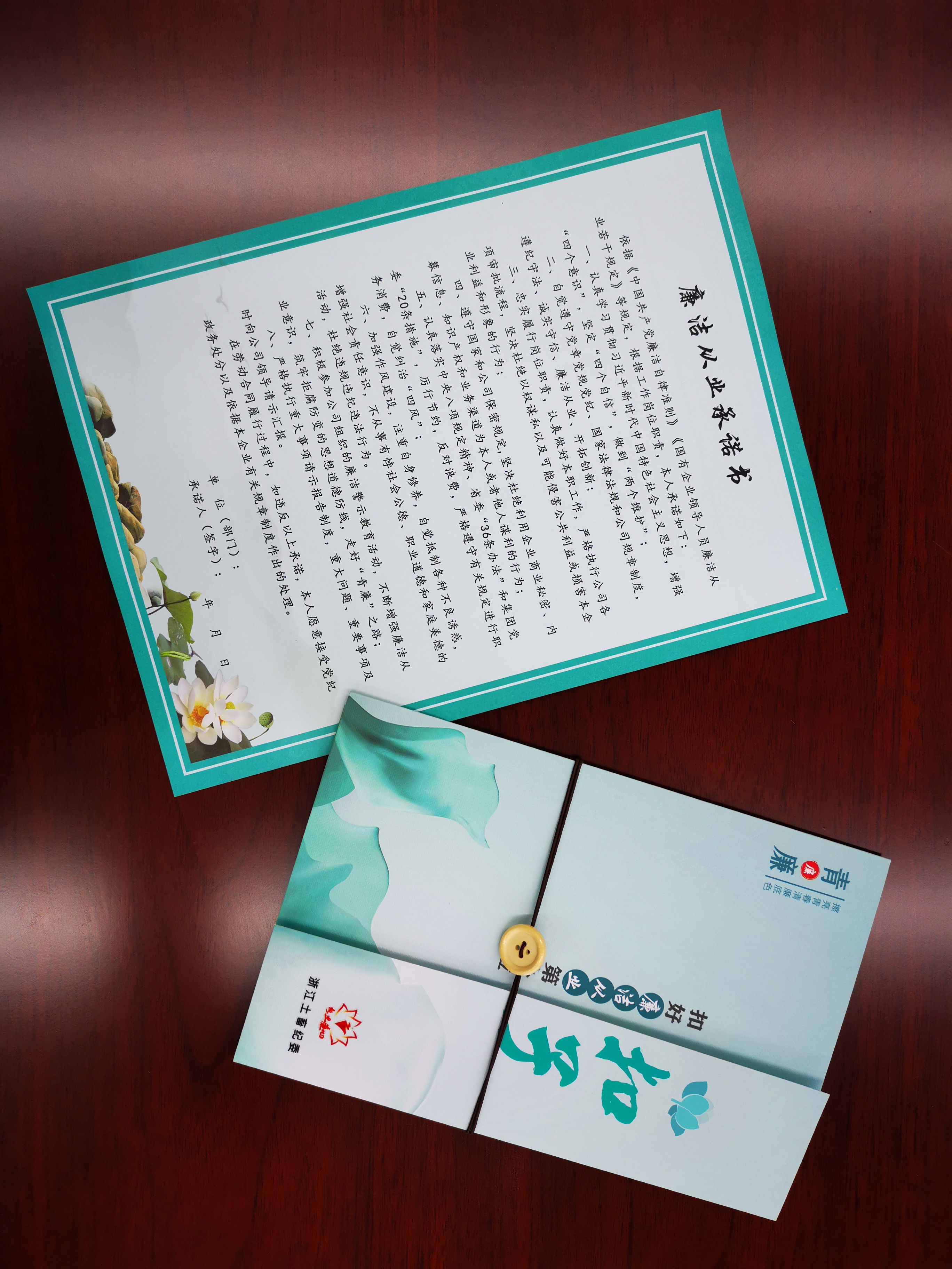 組織新員工簽訂《廉潔從業(yè)承諾書》,把好廉潔履職“入口關”,從源頭筑牢新員工廉潔從業(yè)思想防線,督促新員工嚴格按照承諾內容和要求,將紀律規(guī)矩挺在最前面,守好底線,不逾紅線,做到知敬畏、存戒懼、守底線。