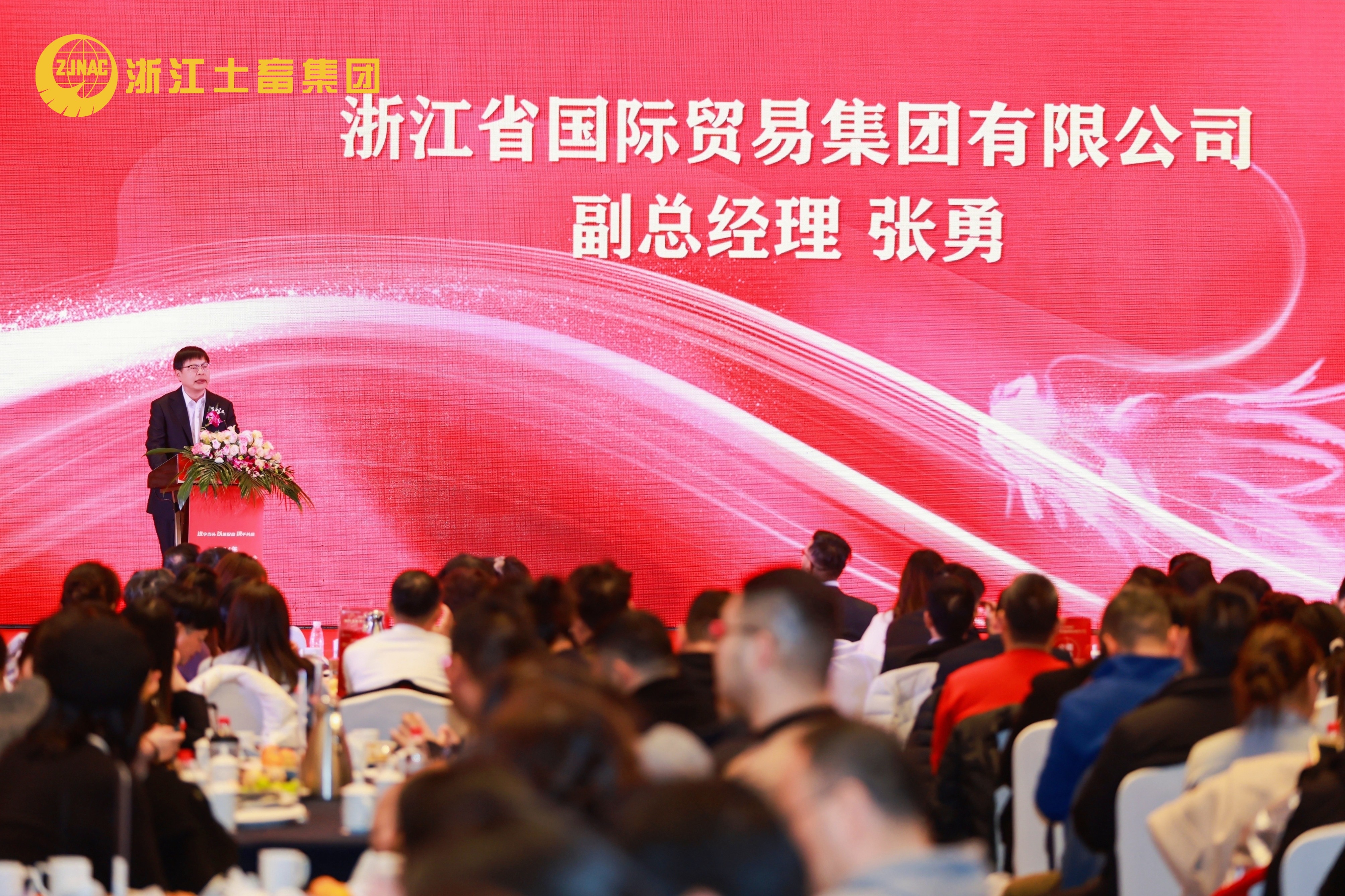 集團(tuán)黨委委員、副總經(jīng)理張勇作重要講話。他指出,集團(tuán)認(rèn)真貫徹黨中央、省委決策部署,全面落實(shí)省委對(duì)集團(tuán)提出的“向‘更高’攀登、向‘更好’挺進(jìn)”要求,主動(dòng)融入中心大局、推動(dòng)發(fā)展穩(wěn)中求進(jìn),堅(jiān)持強(qiáng)化改革創(chuàng)新、持續(xù)深化黨建引領(lǐng),2023年外貿(mào)規(guī)模創(chuàng)7年來新高,獲評(píng)浙江省“十佳外貿(mào)企業(yè)”“穩(wěn)外貿(mào)成績(jī)突出集體”等榮譽(yù)。浙江土畜作為集團(tuán)商貿(mào)板塊旗艦企業(yè),在“穩(wěn)外貿(mào)、優(yōu)結(jié)構(gòu)”的道路上奮勇奔跑,引領(lǐng)商貿(mào)轉(zhuǎn)型。他希望企業(yè)家代表們與浙江國(guó)貿(mào)、浙江土畜乘勢(shì)而上,攜手共創(chuàng)新的輝煌。